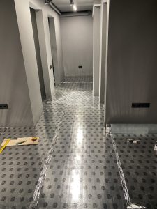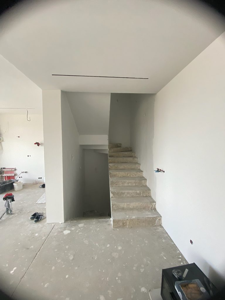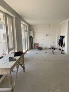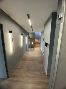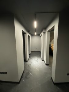 Lucrările au început cu pregătirea minuțioasă a tuturor suprafețelor: curățarea și nivelarea pereților, montarea sistemelor electrice și sanitare, aplicarea tencuielilor fine și pregătirea pentru finisaje decorative. În etapa următoare, echipa noastră a instalat pardoseli din lemn natural și plăci ceramice de mari dimensiuni în zonele umede, oferind o senzație de continuitate și rafinament.